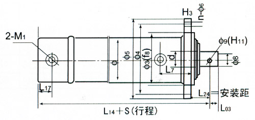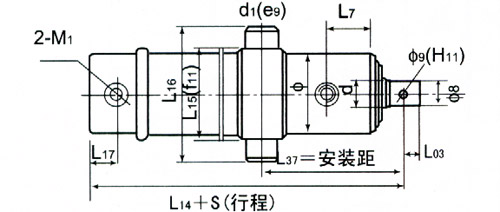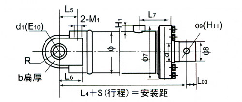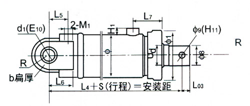 ▲活塞杆端为内螺纹杆头耳环连接的安装连接尺寸表 单位:mm :