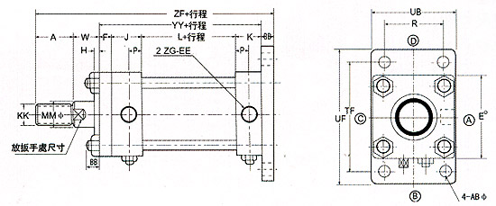 | ▲双活塞杆型(φ40-φ160)φ40-C除外: |