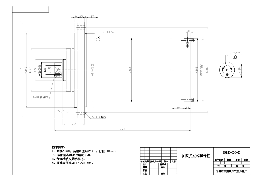 [ φ180/140*210连续回转顶紧气缸图纸下载]